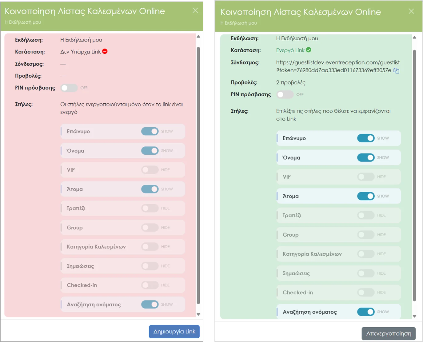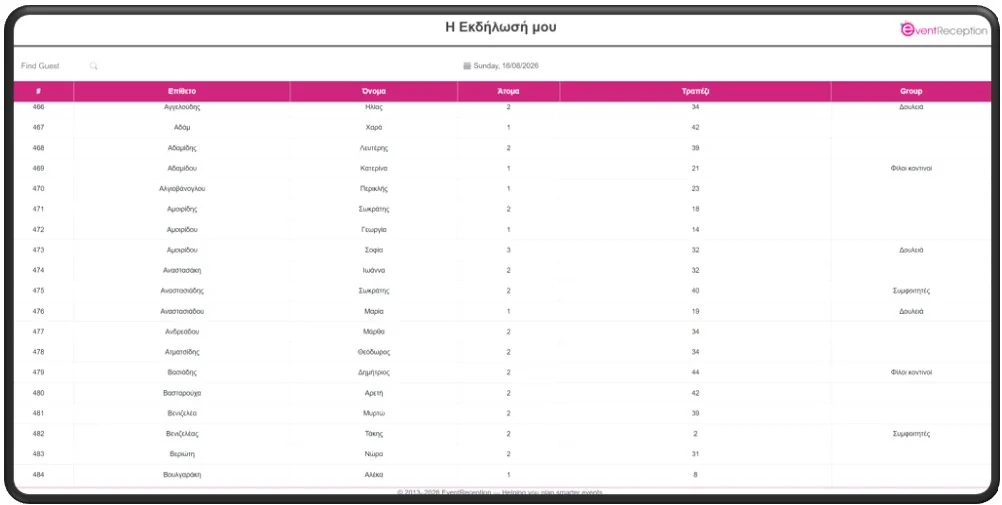 - ✔ Αν θα υπάρχει πεδίο αναζήτησης καλεσμένων