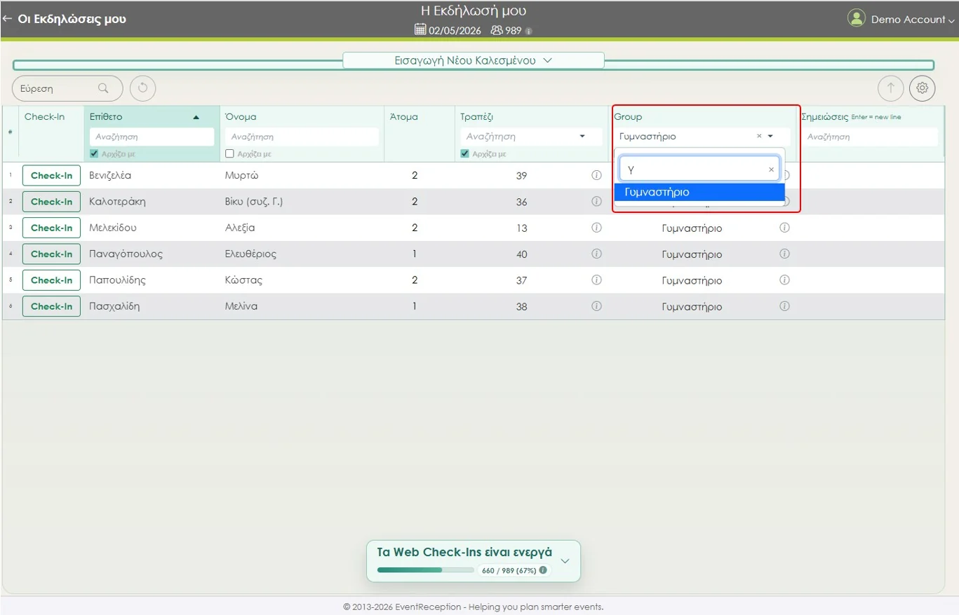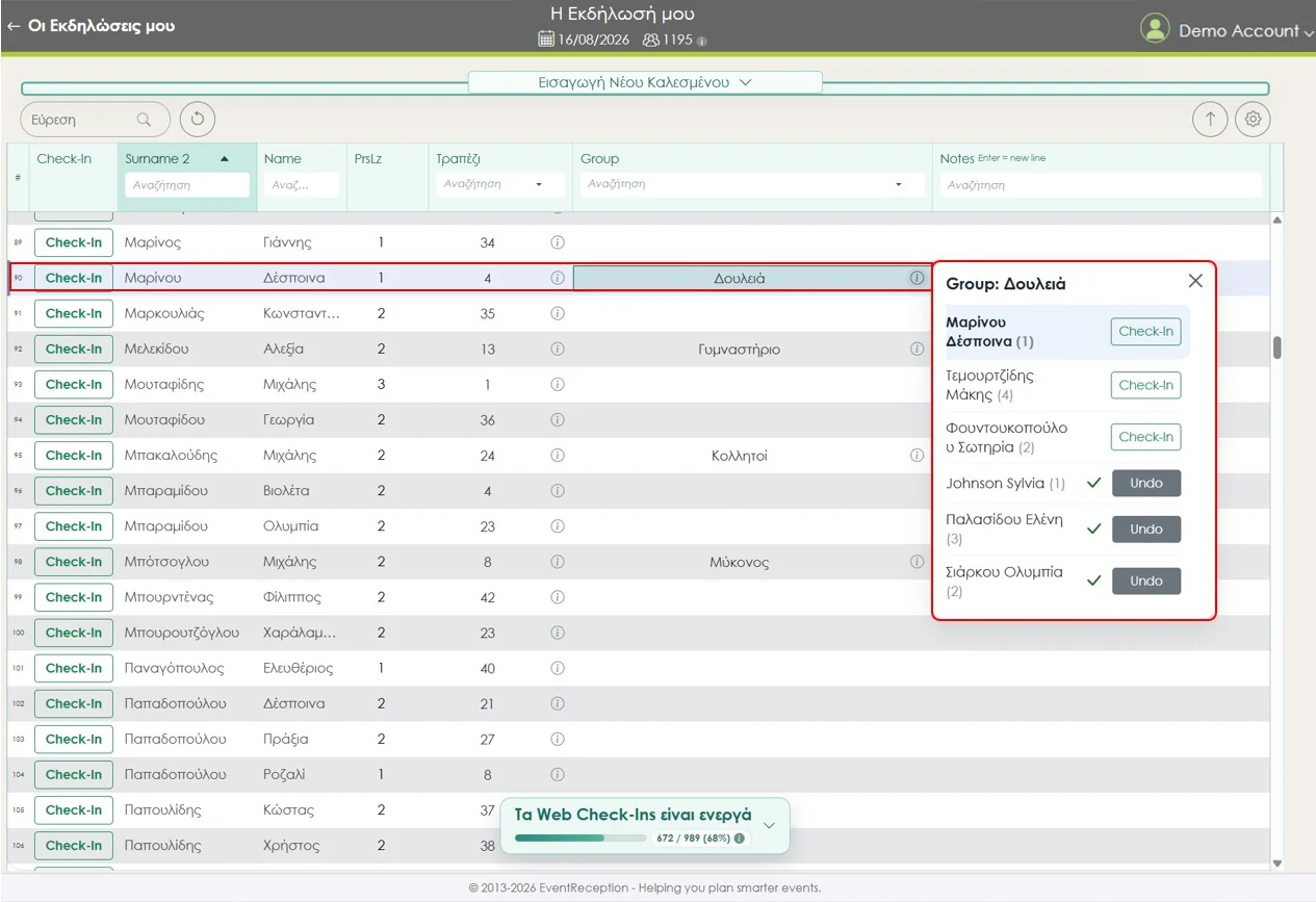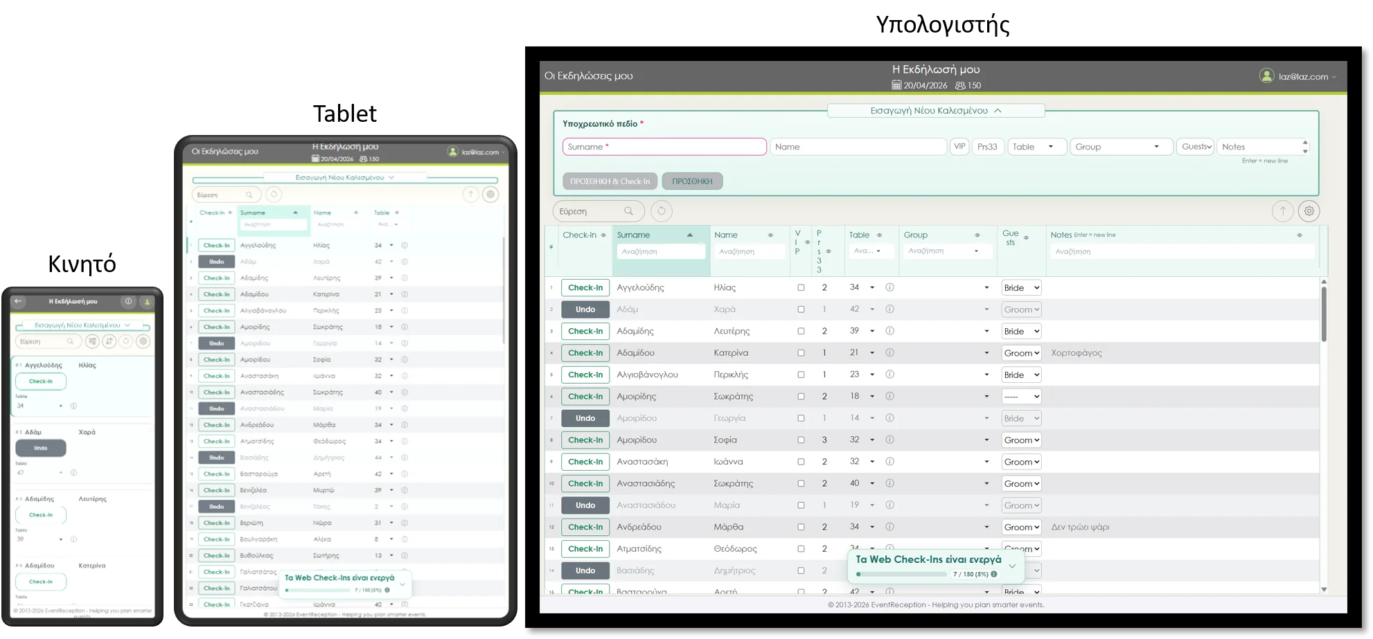 Απλά μπαίνετε στον λογαριασμό σας, ενεργοποιείτε τα Web Check-ins για την εκδήλωση και ξεκινάτε. Χωρίς tablets, χωρίς εγκατάσταση app.
