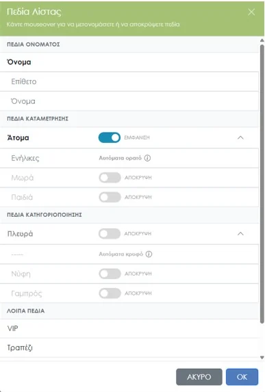 - ✔ Ποιες στήλες θα εμφανιστούν