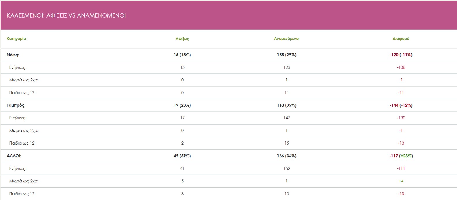 Ανανεώσαμε τους πίνακες με τις ξεχωριστές κατηγορίες καλεσμένων (Δεν ήρθαν, Αφίξεις, Αλλαγές, Εκτός Λίστας).
