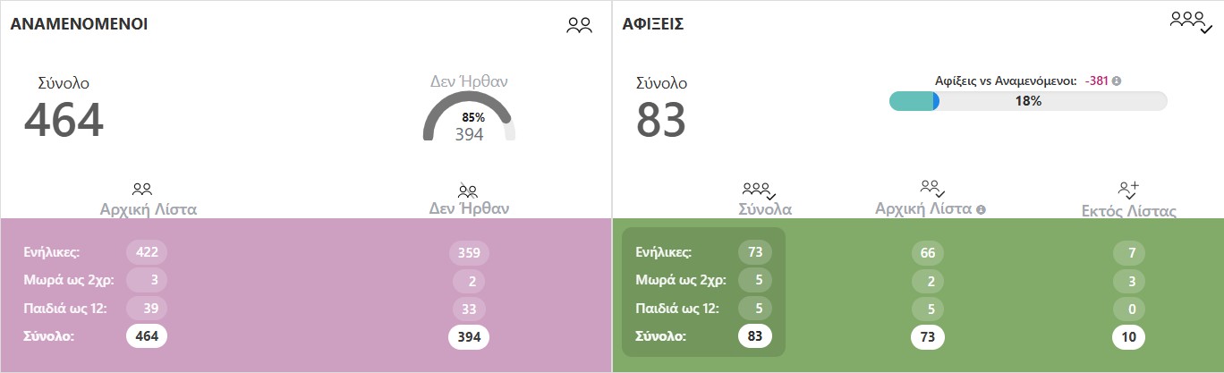 - ✔ Πόσοι ήρθαν εκτός Λίστας (walk-ins)