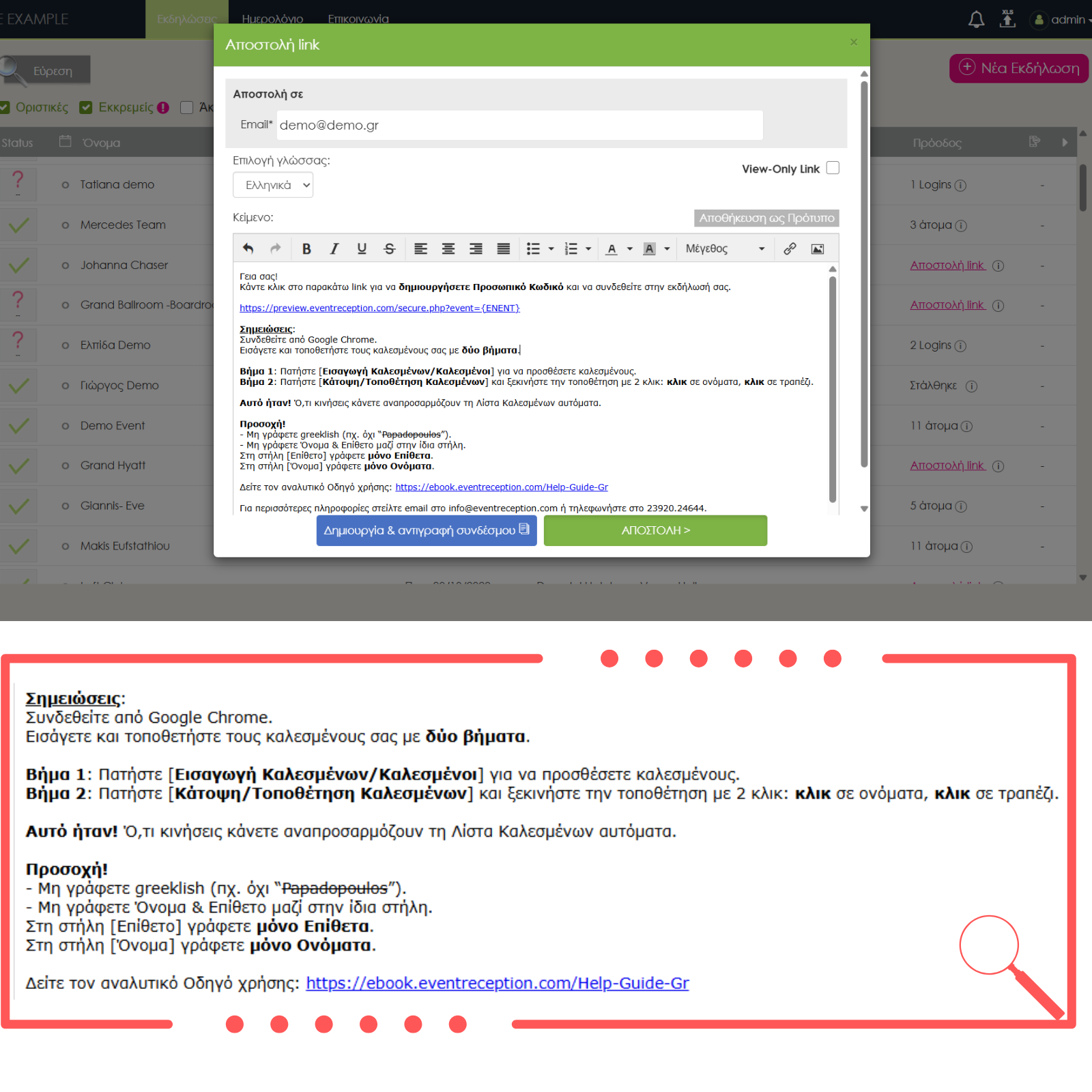 Κάναμε τον Οδηγό Χρήσης πολύ εύκολα προσβάσιμο μέσα από το email πρόσκλησης που στέλνετε στους πελάτες. Συγκεκριμένα προσθέσαμε στο κείμενο του email: